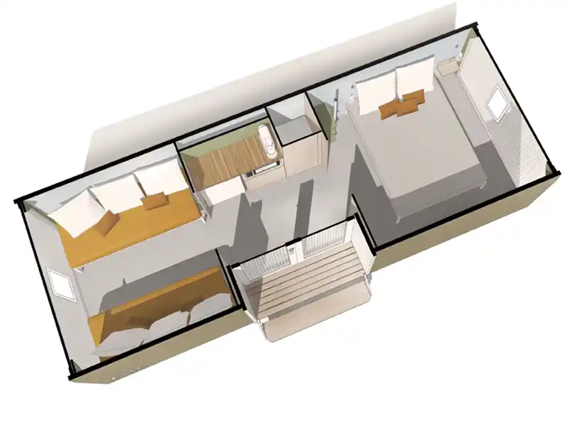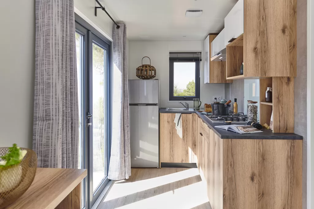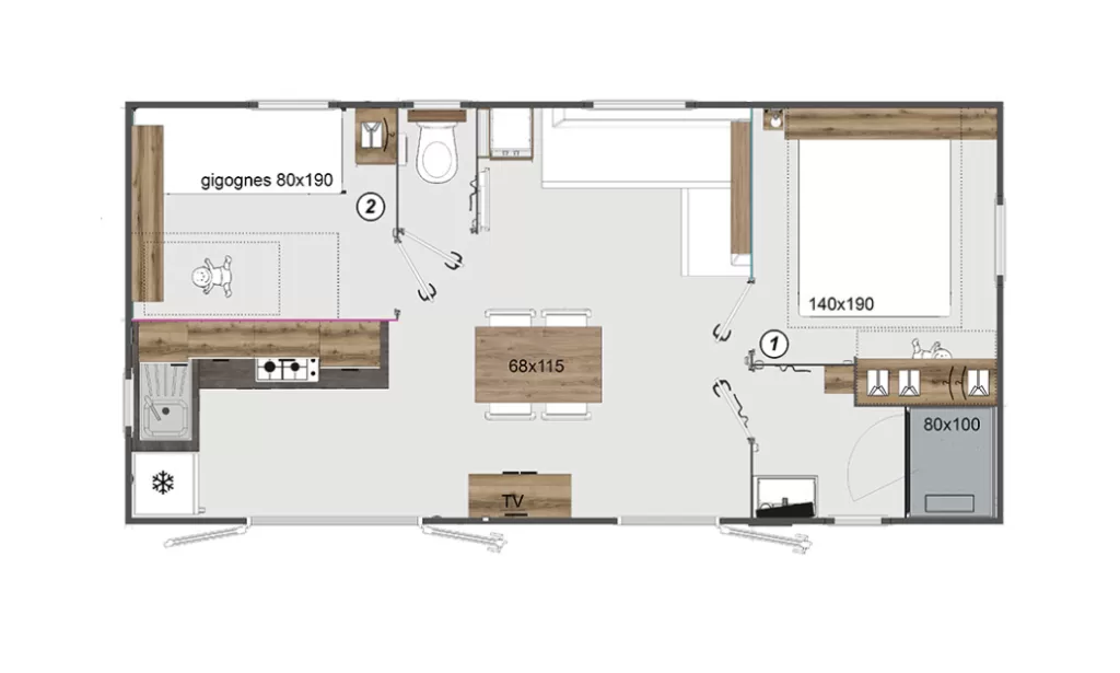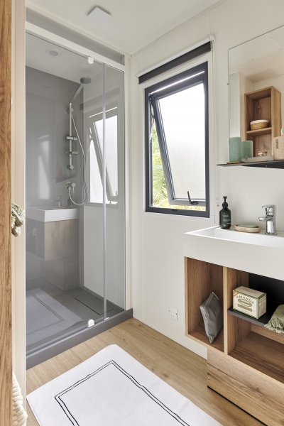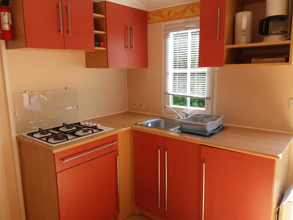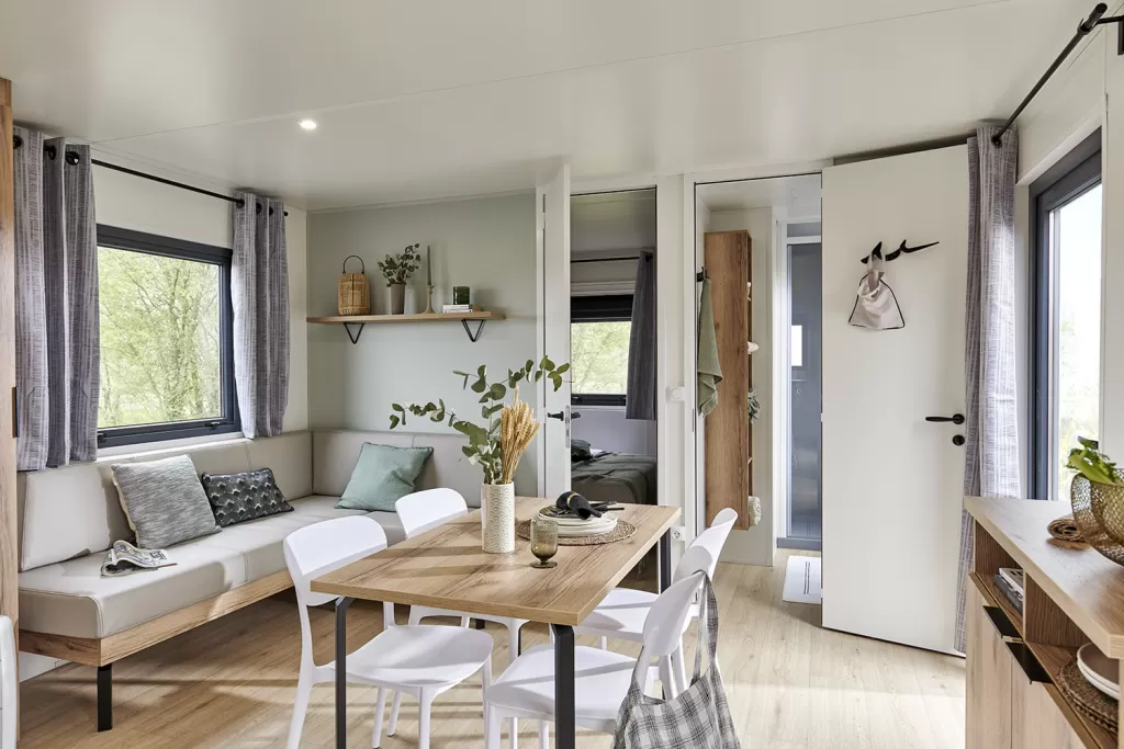 Dans ce Mobil-home tout confort d’une superficie de 28m2, vous pourrez séjourner à 4 personnes.