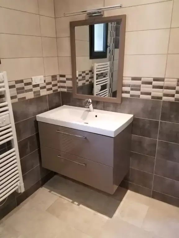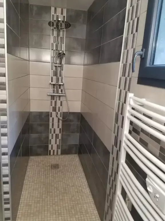 - D’une salle de bain avec grande douche italienne, lavabo, WC et lave-linge.