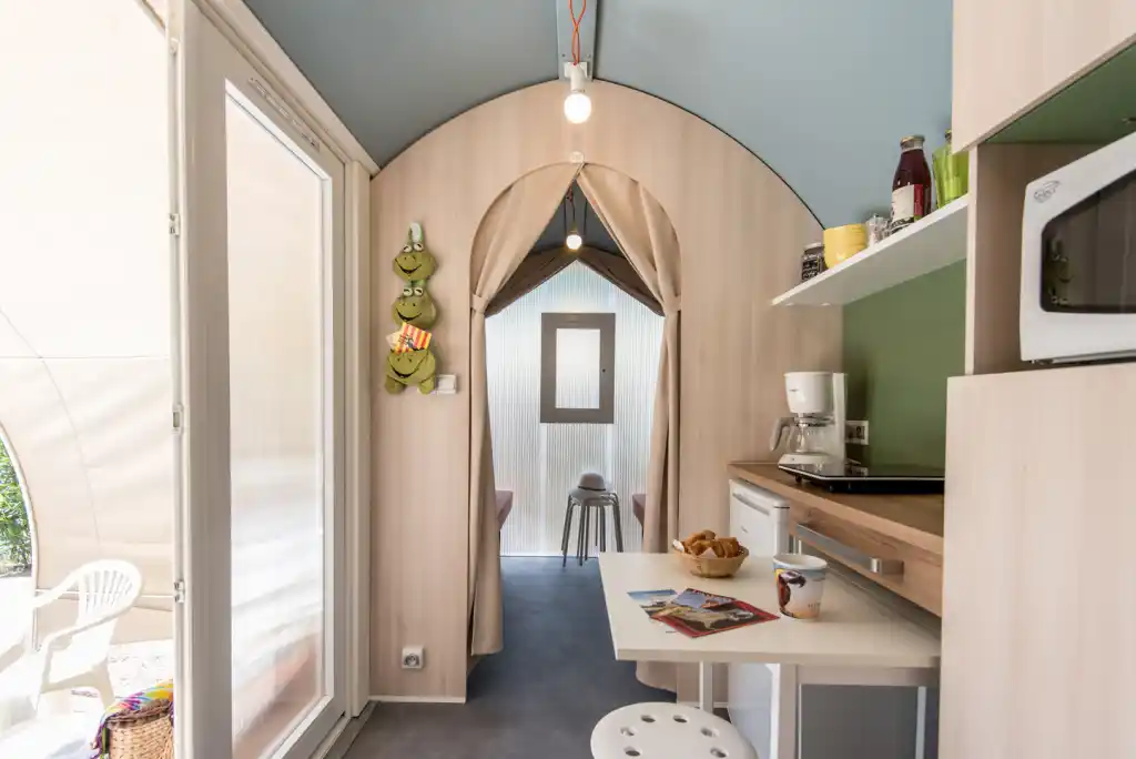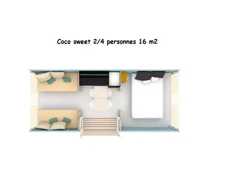 Pour profiter d’une expérience en camping traditionnel mais avec le confort d’un locatif, nous vous proposons le coco-sweet pour 4 personnes d’une superficie de 16m2.