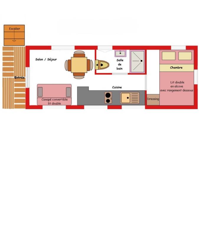 Dans ce joli chalet d’une superficie de 24m2, vous pourrez séjourner à 4 personnes.