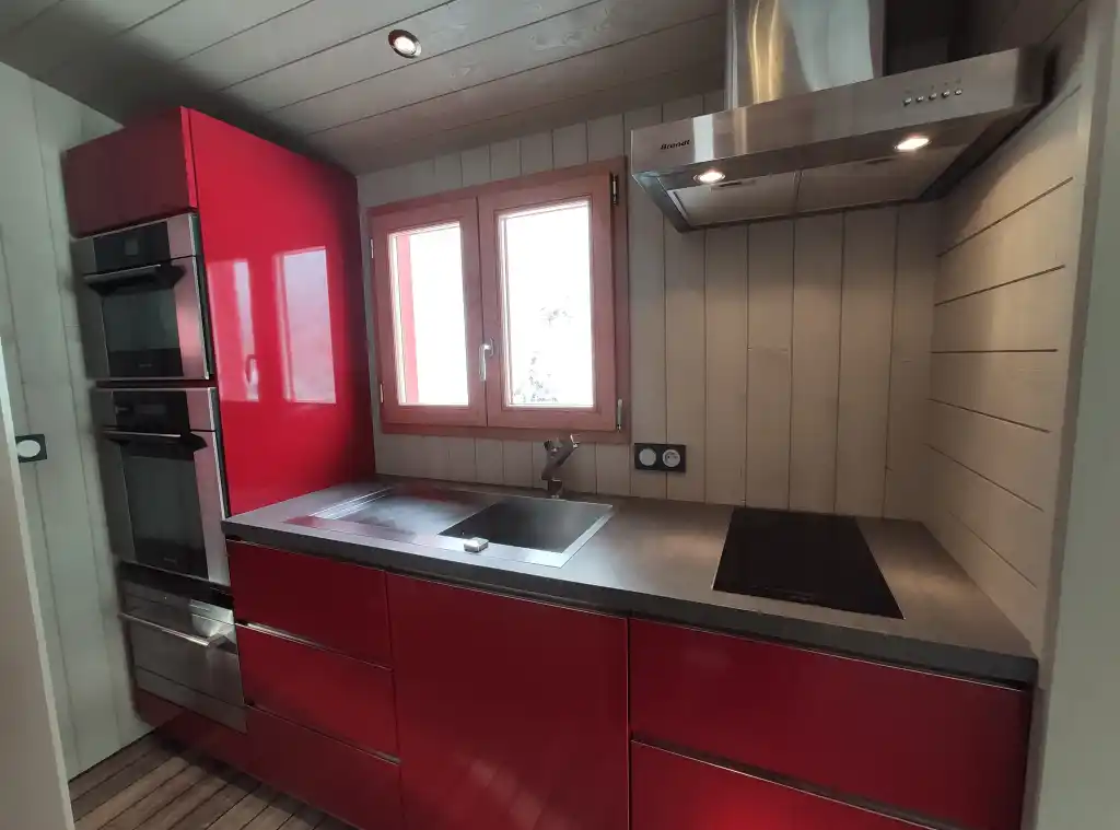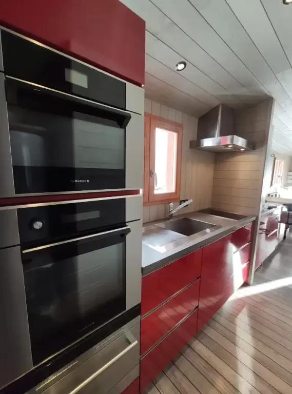 - D’un espace de vie avec coin cuisine (réfrigérateur, four /micro-onde, plaque de cuisson, lave-vaisselle, cafetière électrique, bouilloire, vaisselle et nécessaire ménage).